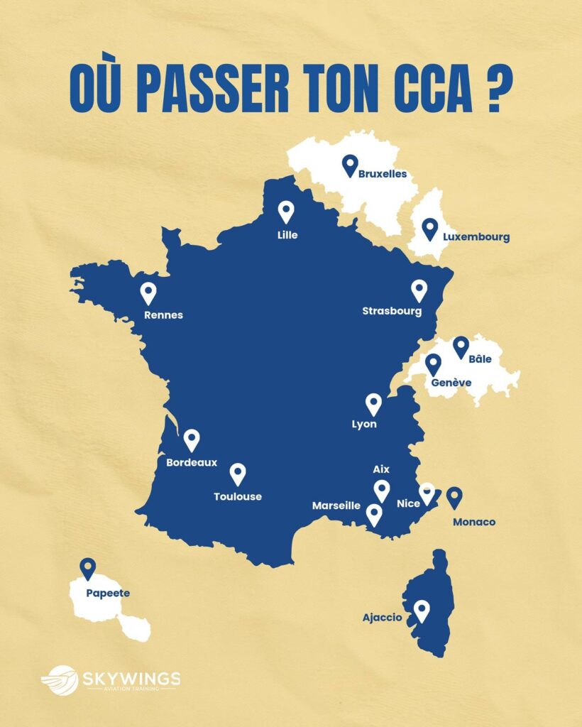 En France, SkyWings accueille les futurs PNC pour la formation CCA Ã Lyon, formation CCA Ã Marseille ou Aix, formation CCA Ã Nice, formation CCA Ã Ajaccio, formation CCA Ã Lille, formation CCA Ã Papeete, formation CCA Ã Rennes, formation CCA Ã Strasbourg, formation CCA Ã Toulouse et formation CCA Ã Bordeaux.